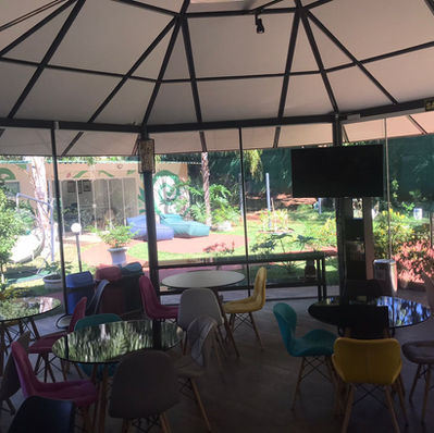 Nosso quiosque é um espaço acolhedor, bem climatizado e ideal para momentos especiais. Com capacidade para acomodar confortavelmente até 36 pessoas, ele oferece toda a estrutura necessária para o seu evento: 9 mesas, 36 cadeiras e uma mesa de apoio onde você pode organizar os alimentos, bolos ou o que desejar servir aos seus convidados.
